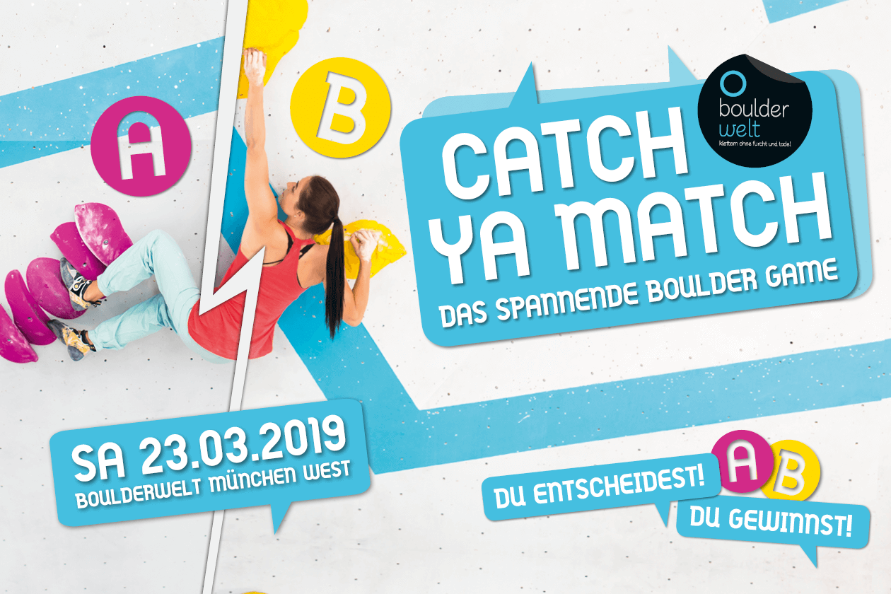 Komm zu unserem Boulder Game CATCH YA MATCH am 23.3.19 in der Boulderwelt München West.