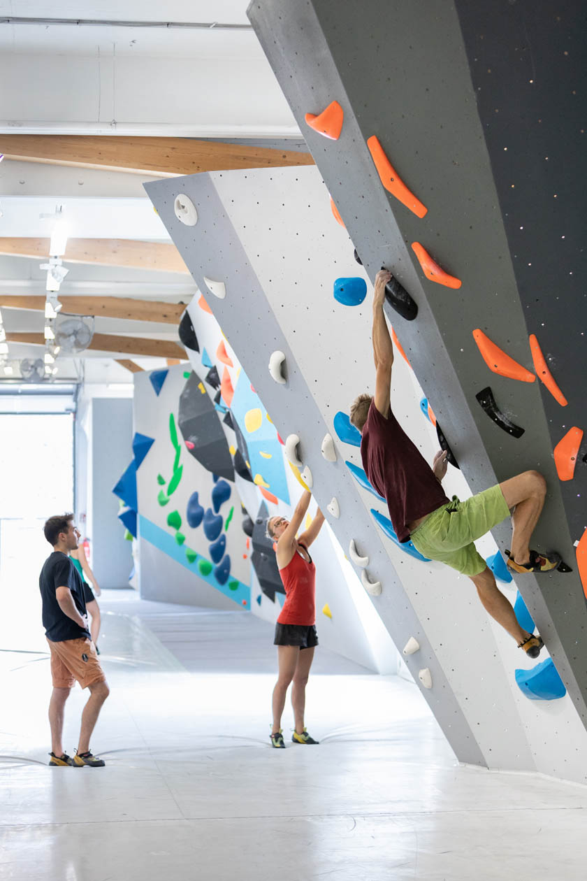Bouldern und Klettern mit Freunden bei einer Session an der neuen Wettkampfwand in der Boulderwelt München West