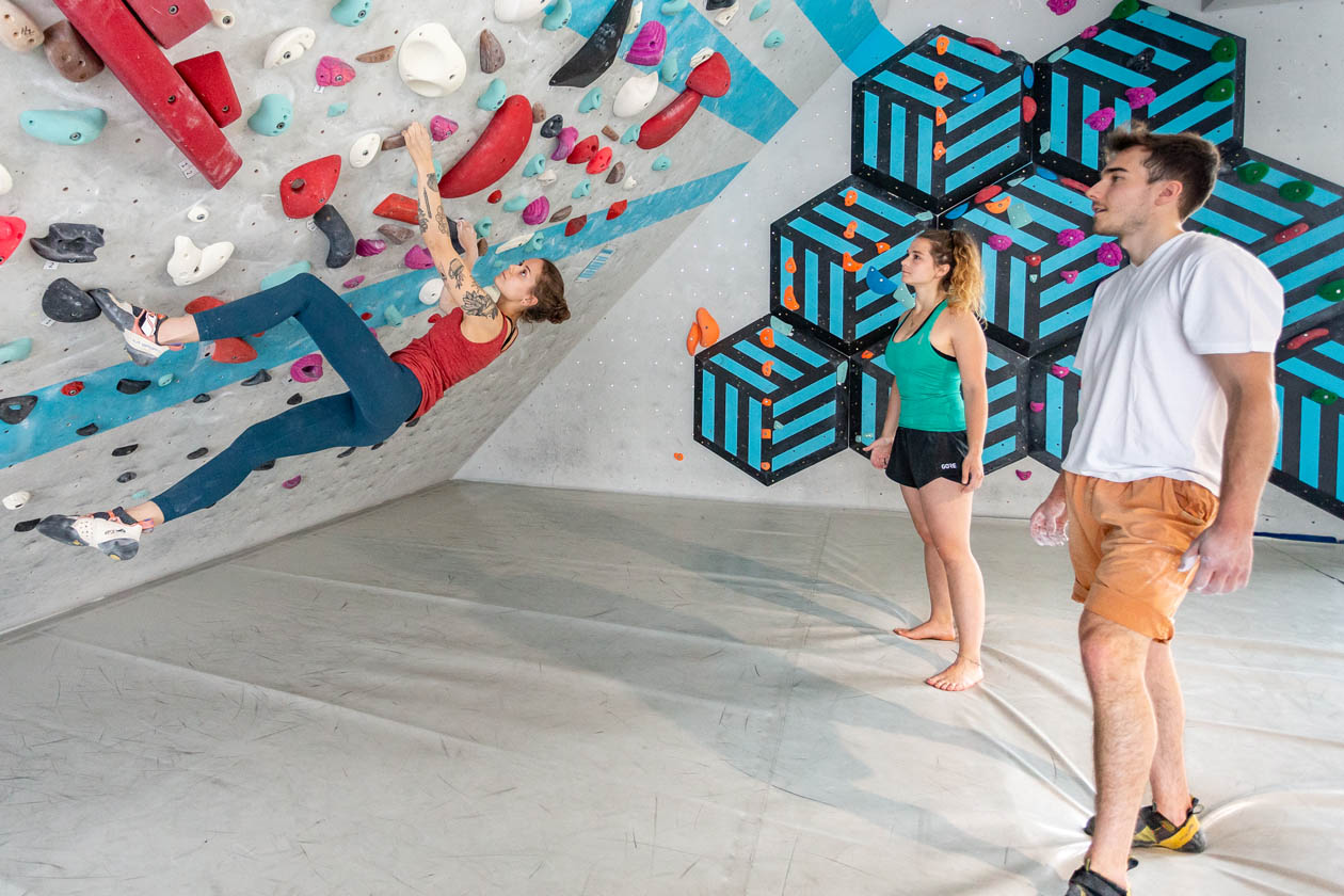 Bouldern und Klettern mit Freunden bei einer Session an der Definierwand in der Boulderwelt München West