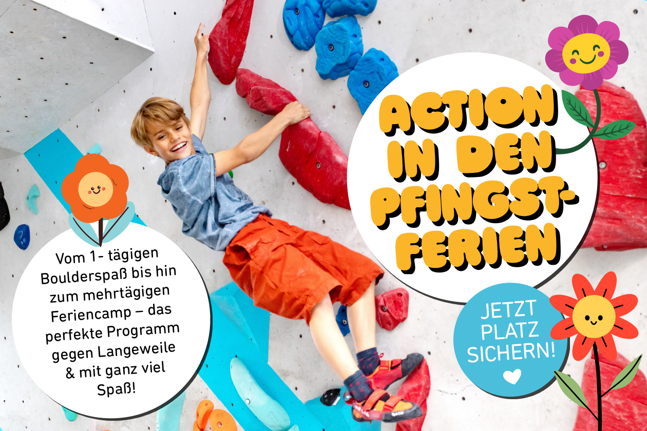 Dein Kind hat bald schon wieder Ferien, doch Du musst arbeiten? Ostern ist erst vorbei und schon stehen die Pfingstferien vor der Tür. Entdecke unsere Ferienkurse für Kids von 5 bis 12 Jahren! Ob einer oder mehrere Tage voller Action & Abenteuer: In unseren Kursen warten spannende Bouldereinheiten, kreative Gruppenaktionen und viel Teamspaß – gerne kannst Du auch remote aus unserem Café arbeiten!
